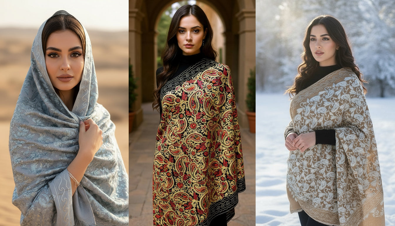 Luxurious Kashmiri Embroidery Shawl with White on White Design - Elegant and Sophisticated Shawl 35x80 inches